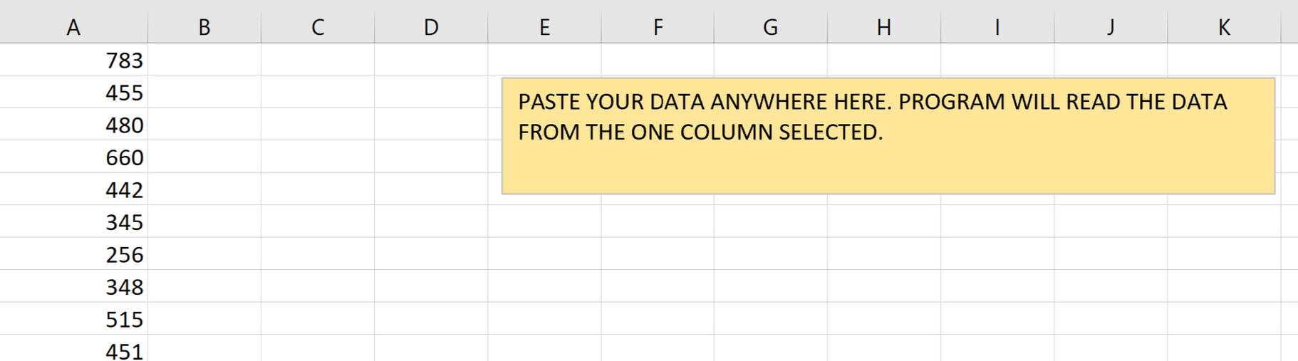 This template will read a given column of number data pasted into sheet and return powerful insights into your data very quickly then create a report for you. Starts by pasting number data, clicking a button to specify lower /min and upper/max limit or threshold. Then you will get a report with statistics about your data.
