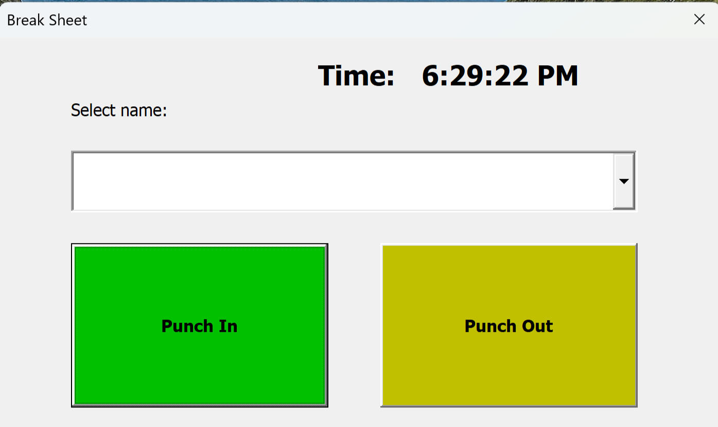 This Excel with integrated VBA form is a great timecard keeping solution for your employees. All you need to do is put your employee list and the week to start tracking. Employees can then punch in and out on a daily basis so you can record their time worked.System Features:
