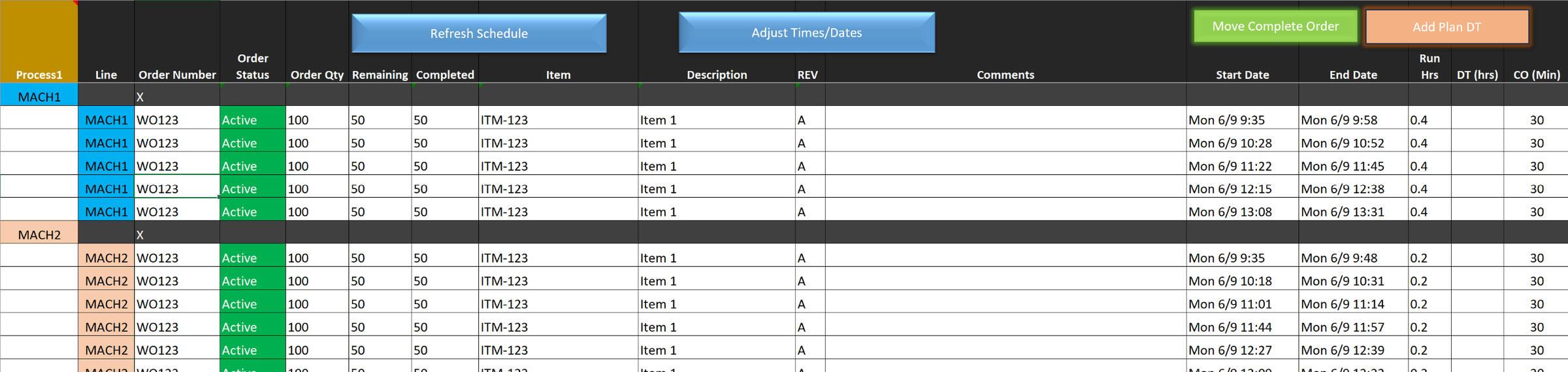 Set/Schedule orders per line