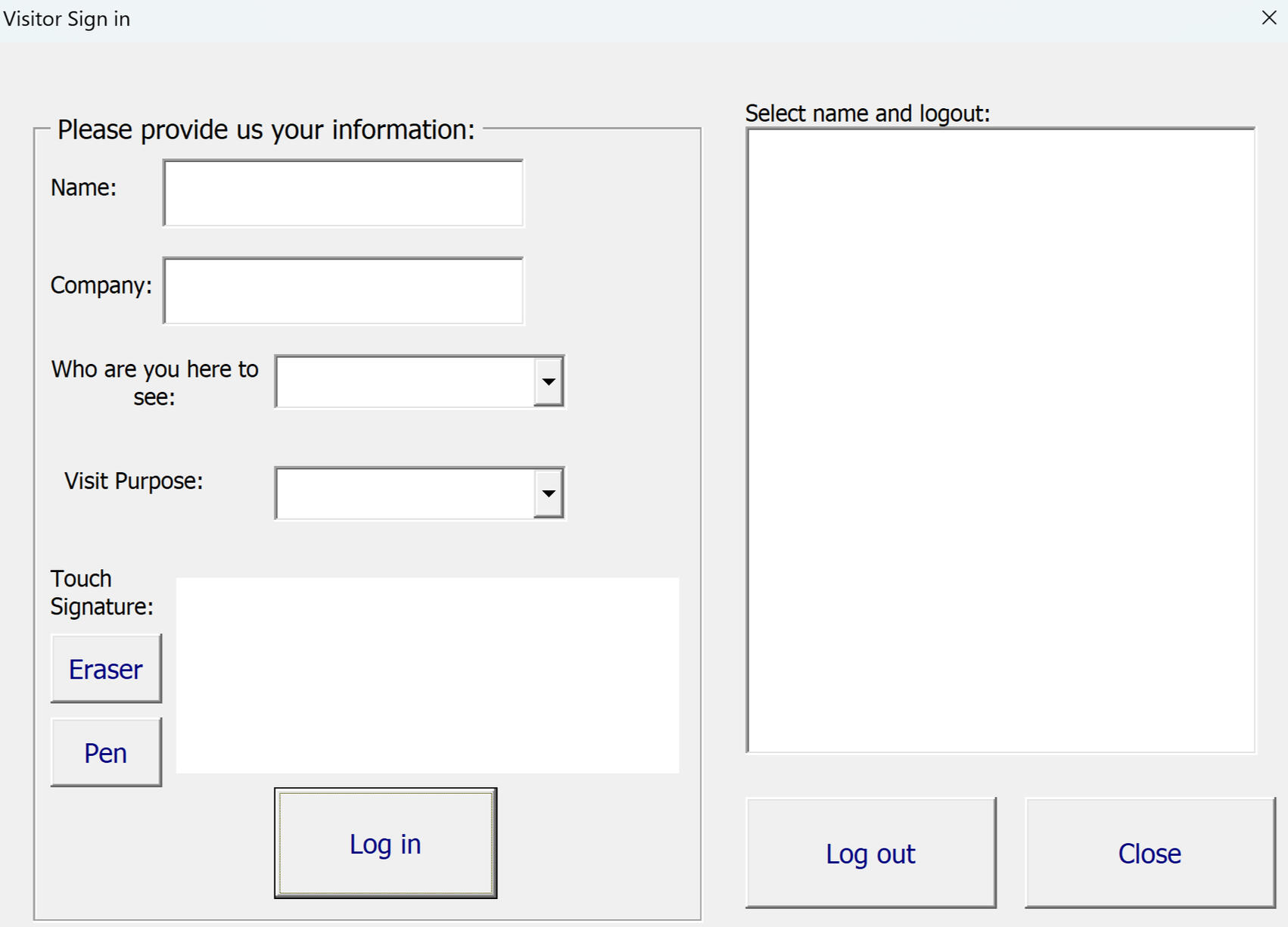 Visitor Sign In and out program will be your solution to checking in and out visitors into your business.System Features: